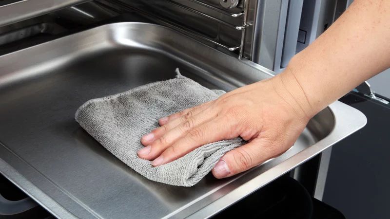 (3)清洗炉门:用温热的湿布擦拭门、门窗的两边、密封圈及邻近的零部件;
