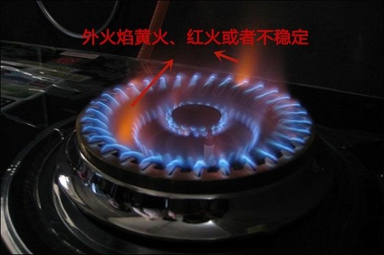 有时候我们会发现使用燃气灶时,火焰是黄色或红色,还会发现锅底被熏黑了,都是火焰不完全燃烧导致的,这时应该调整燃气灶的风门,将火焰调至正常,锅底就不会熏黑了。