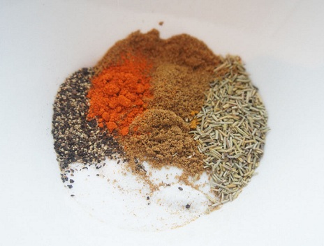 然后弄点干腌料。想吃羊肉原味的只用盐和黑胡椒就够了。
